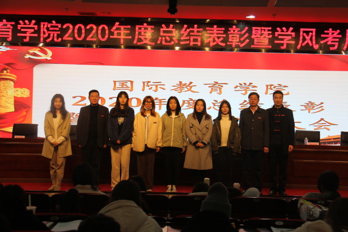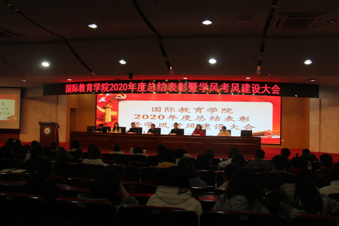 2021年1月4日下午, 国际教育学院在图书馆学术报告厅举行了2020年度总结表彰暨学风考风建设大会。大会由院党委王龙辉书记主持,学院全体师生出席了本次大会。