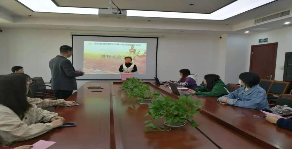 2020年12月28日,国际教育学院学生第一党支部召开全体党员大会议进行换届选举。