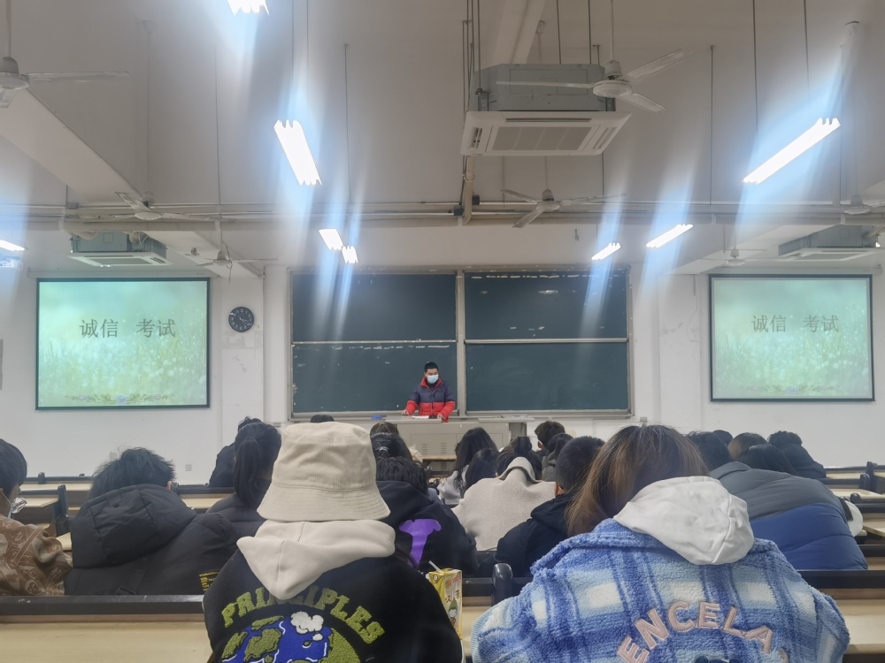 诚信是为人的基本准则,是同学们在当今学习和生活中以及未来不可缺少的品质。会上,孙老师首先根据实际经历着重强调了诚信的重要性和必要性,接着邀请了两位同学上台分享自己对言行诚信与考试诚信的看法,强调在期末考试时期,营造诚信考试的良好氛围,“学习诚信,遵守诚信”。