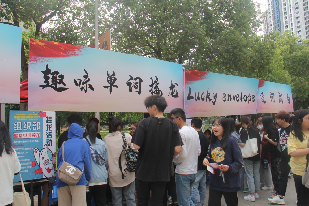 为繁荣校园文化,努力营造活跃、和谐的校园文化氛围,充分展示我院学生积极向上的健康风貌,激发同学们雅思学习的兴趣,国际教育学院面向全校学生于4月26日下午在生活区主干道开展“庆祝建党百年,传承红色基因”第三届雅思文化艺术节之“雅思游园会”英文主题趣味活动。通过设计英语趣味游戏,让同学们在活动和游戏中展示英语,运用英语。