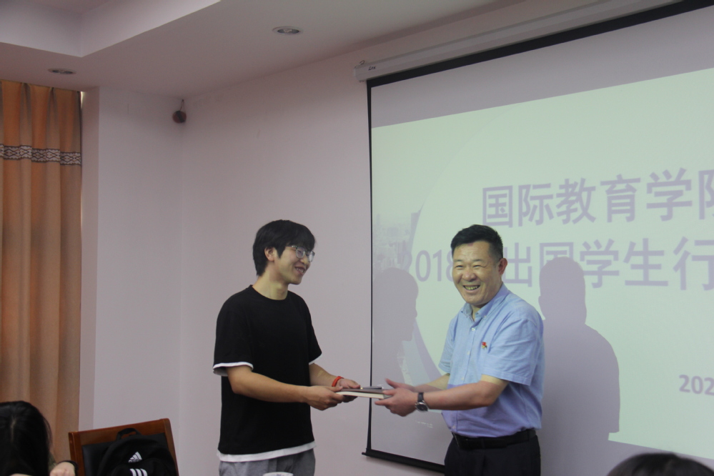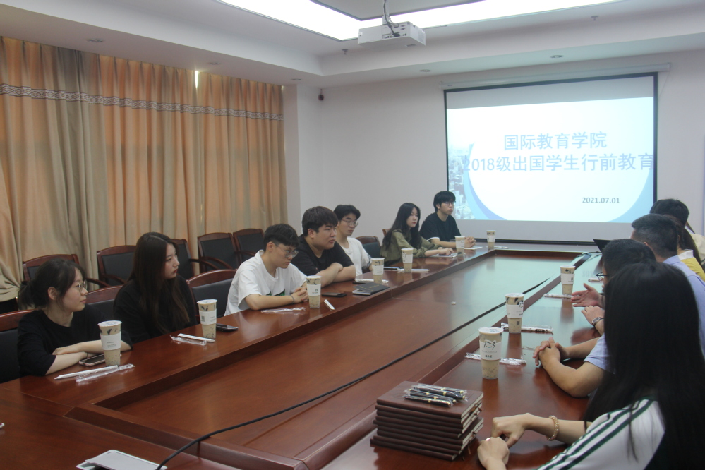 7月1日,国际教育学院在学院会议室召开2018级出国学生行前教育座谈会。学院党委王龙辉书记、学院党委黄颖副书记出席了座谈会。会上,王龙辉书记教育2018级的出国学生留学期间不忘自己是中国人不忘自己是江夏人,充分利用海外留学机会,刻苦学习,学成归来,报答父母报效祖国。黄颖副书记也对即将出国的同学们表达了殷切期望,希望同学们在海外能够讲好中国好故事,传播中国好声音,为学弟学妹们起到模范标杆作用。会后,学院领导为出国学生颁发了学院特别制作的纪念品并给予了美好祝福。