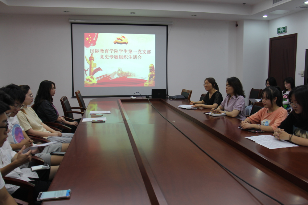 2021年7月12日,国际教育学院学生第一党支部在学院会议室召开了党史专题组织生活会,本次会议由学生第一党支部书记黄颖老师主持,全体党员参加了本次会议。