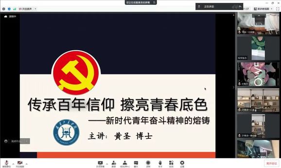 黄圣老师结合对习近平总书记在庆祝中国共产主义青年团成立100周年大会上的重要讲话精神解读,围绕“新时代青年的成长与困厄”、“汲取百年党史的信仰力量”、“在奋斗中擦亮青春的底色”三个方面为我们讲述了新时代青年理想信念的树立和奋斗精神的熔铸。
