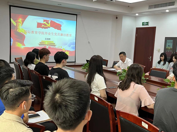 2022年6月16日下午,王龙辉书记在学院大会议室组织召开2018级毕业生党员在离校前的最后一次关于廉洁教育的党课。会议主要为了加强毕业生党员的党性修养和廉洁自律意识,在职业规划的道路上扣好人生第一粒扣子。
