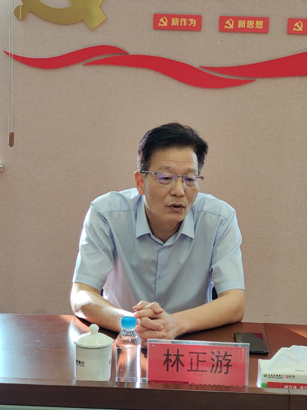 长乐农商银行董事长林集琪对林正游副校长一行的到访表示热烈欢迎。他介绍了长乐农商银行的党建品牌、企业文化、招聘岗位、人才需求、薪酬福利等基本情况,并对福建江夏学院毕业生的综合素质和专业能力给予了充分地肯定。