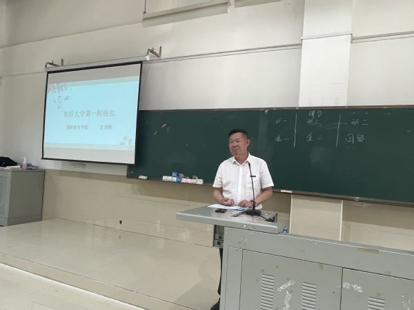 最后,王龙辉书记对新生们提出希望,希望同学们能够做到不负时代,不负韶华,知行合一,砥砺前行,扣好大学生涯的第一粒扣子。
