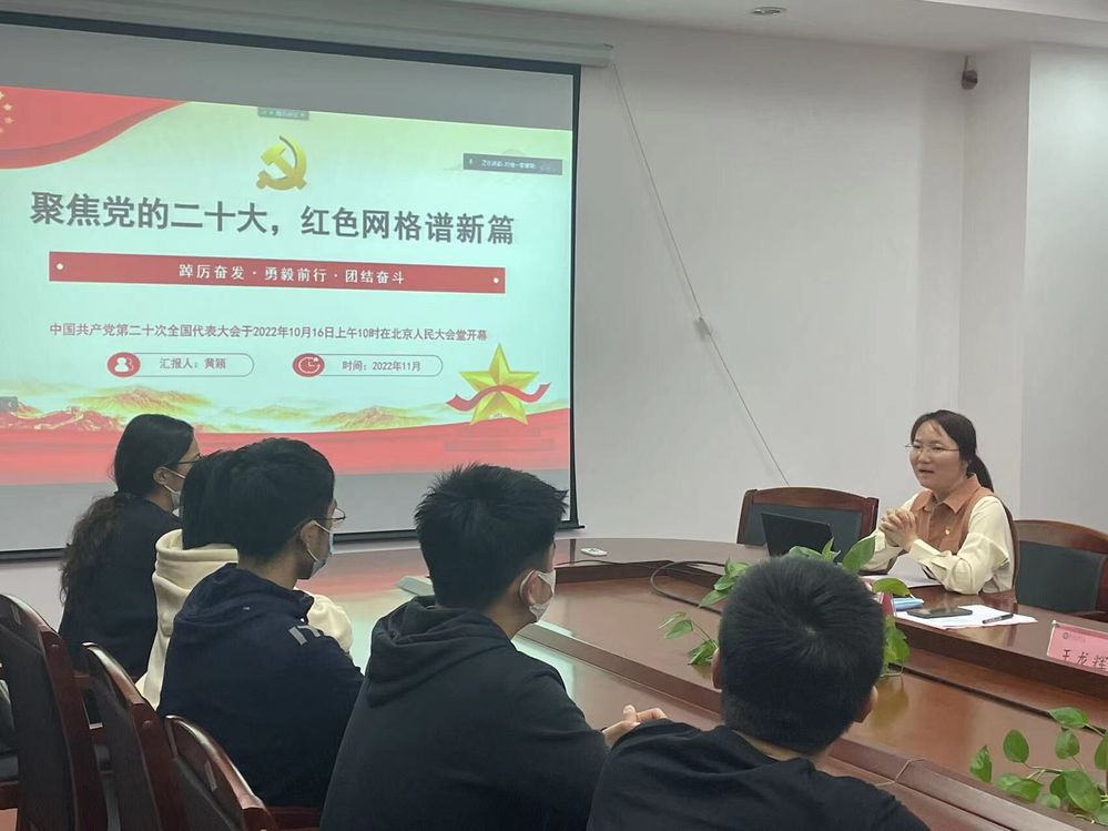 为全面学习贯彻党的二十大精神,强化学院党员、入党积极分子的理论教育,11月22日,国际教育学院党委黄颖副书记为国际教育学院分党校第十二期全体学员开展了以“聚焦党的二十大,红色网格谱新篇 ——踔厉奋发·勇毅前行·团结奋”为题的专题党课。学员通过线下、线上相结合的方式参加党课学习。