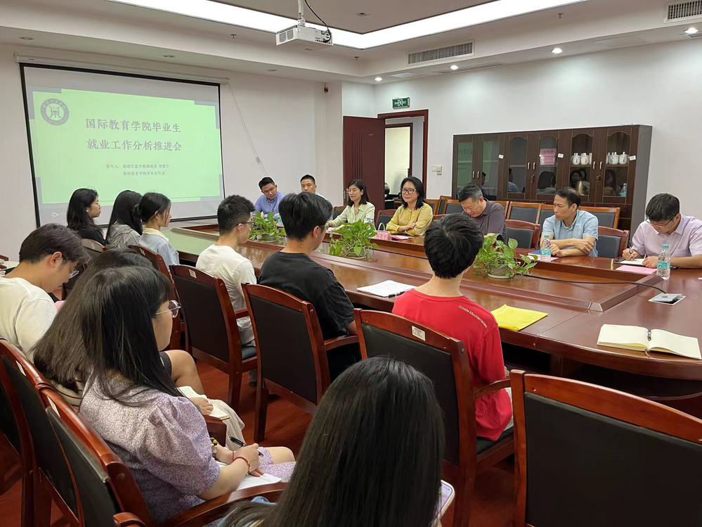 国际教育学院党委书记王龙辉汇报了学院毕业生就业情况,分析和研判就业形势,希望同学们树立正确的就业观,在就业中找到自己的定位,在拼搏中实现人生价值。
