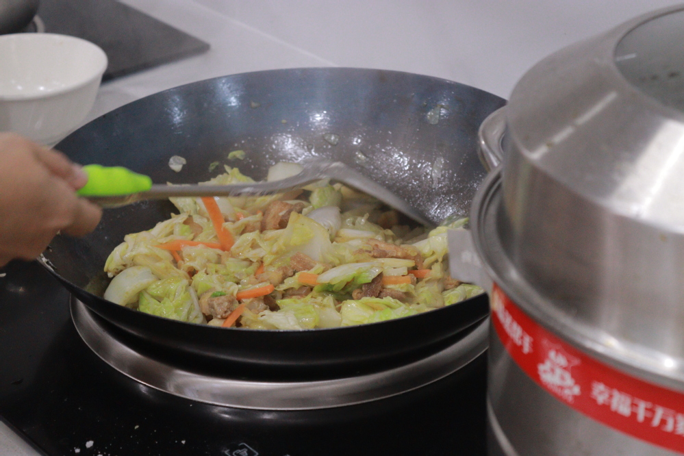 活动前,同学们积极报名、充分准备;活动中,由老师带队组建烹饪小组,进行厨艺大比拼,大家分工协作,共同烹饪美味佳肴,通过共同努力,一道道香气诱人菜肴新鲜出炉,有青椒炒虾仁、红烧排骨、酸辣土豆丝、五花肉炒白菜、火腿炒饭和手工水饺等多道佳肴,大家围坐一起、共享劳动成果、收获劳动喜悦;活动后,老师们与同学们进行了亲切的交谈,学院党委副书记董林飞对两委干部提出了三点希望,一是要加强学习,提升履职服务能力,二是要努力学习,提升学业水平和综合素养,起到引领示范作用,三是要及早做好学业和就业规划,实现人生目标。