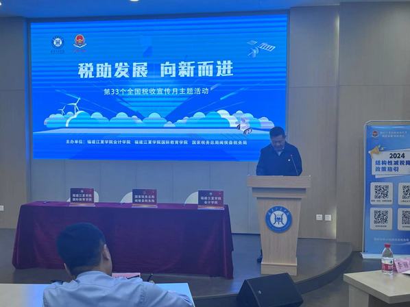 王龙辉书记在致辞中表示本次活动是税校合作、协同育人的新机遇,也为双方加强交流学习、优势互补、共同提高提供了新平台。学院希望双方通过强化税校合作,帮助大学生深入了解创业就业税收优惠、个税等税收政策,引导学生注意保护个人金融信息、远离校园贷,借此提升财经素养,树立正确的就业创业观。同时希望把税校合作打造为特色的党建品牌,双方筑牢常态化合作机制,把党建共建走深走实,找准党建育人的切入点和立足点,让学生入脑入心,构建协同育人的大思政格局,实现合作共赢。