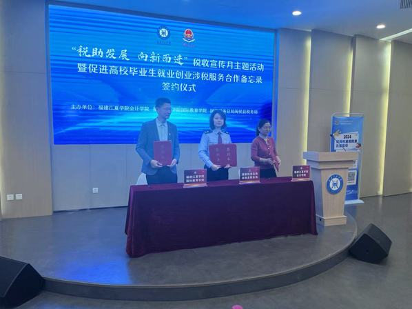 4月1日,国际教育学院与国家税务总局闽侯县税务局开展党建共建、税校合作签约仪式。学院班子成员、学生党员代表、国家税务总局闽侯县税务局领导出席了该活动。学院党委王龙辉书记代表学院致辞并与闽侯县税务局签订党建共建协议。曾光清院长代表学院与国家税务总局闽侯县税务局签订《高校毕业生创业就业暨涉税服务合作备忘录》。