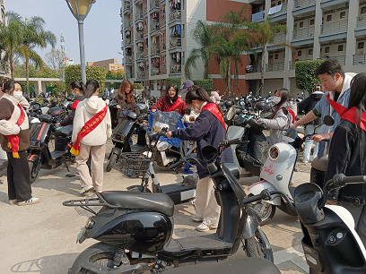 3月3日下午,团委青年志愿者协会开展“春风如约至,规范校园美”校园电动车规整志愿活动,对24、26号楼栋区域及周边进行了电动车停放的规整。志愿者们相互配合、协调有序,将充电桩旁和停车场乱放的电动车摆放整齐有序,为同学们营造了好的生活环境。
