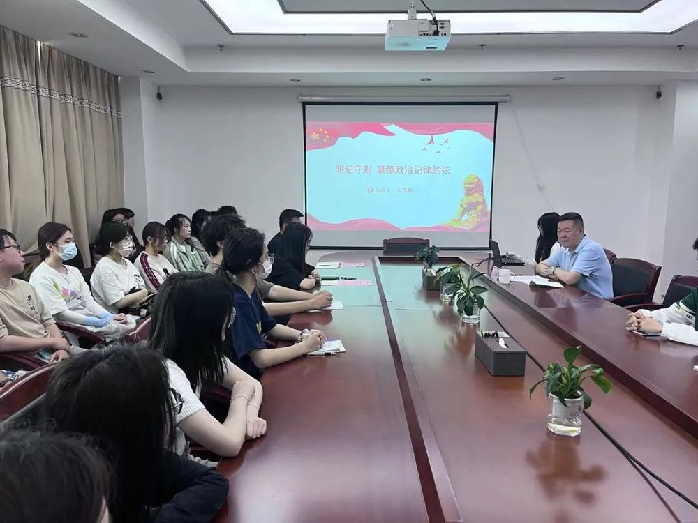 在开班仪式奏唱国歌结束后,学院党委董林飞副书记向第十五期党校学员们提出了培训的纪律与要求,宣读了本次培训的授课计划表开班仪式结束后,学院党委王龙辉书记为同学们开展了主题为“明纪守则,紧绷政治纪律的弦”的第一讲党课。在本次党课上,王龙辉书记带领培训成员们学习了新《条例》,强调作为党员应将政治纪律时时刻刻铭记于心,并为同学们深入讲解了作为新时代青年学生应如何跟紧党的步伐。王龙辉书记叮嘱同学们坚持严于律己,提高自身理论修养,不断加强学习,进一步强化党员意识,端正入党动机,时刻紧绷政治纪律的弦,将党的二十大精神贯彻到生活、学习的方方面面。通过本次党课,学员们对为什么要学新《条例》,为什么要严守政治纪律、如何紧绷政治纪律的弦有了更加深刻的认识。在本次党课结束后,同学们纷纷表示,要加强政治纪律的学习,明纪守则,时刻加强自身理论建设与思想水平,紧跟党的步伐,在今后的工作和学习中不断弘扬党的二十大精神。