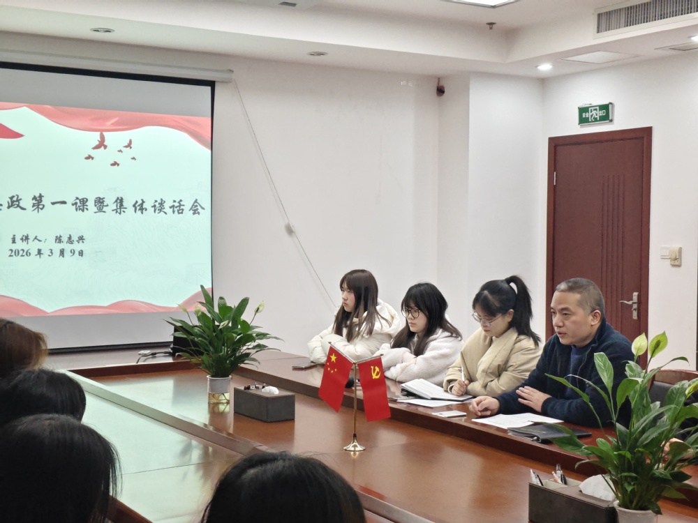 为强化学生干部思想政治引领,筑牢理想信念根基,3月9日下午,国际教育学院党委副书记陈志兴为学生干部讲授“开学第一课”并开展集体谈话,团委负责人林榕馨主持,学院三委一中心近50名学生干部参加。